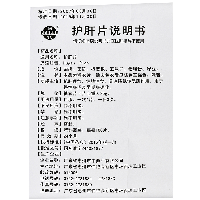 【主要成份】 柴胡、茵陈、板蓝根、五味子、猪胆粉、绿豆。