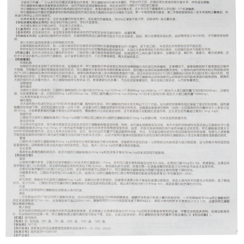 阿仑膦酸钠片/10mg*6片
