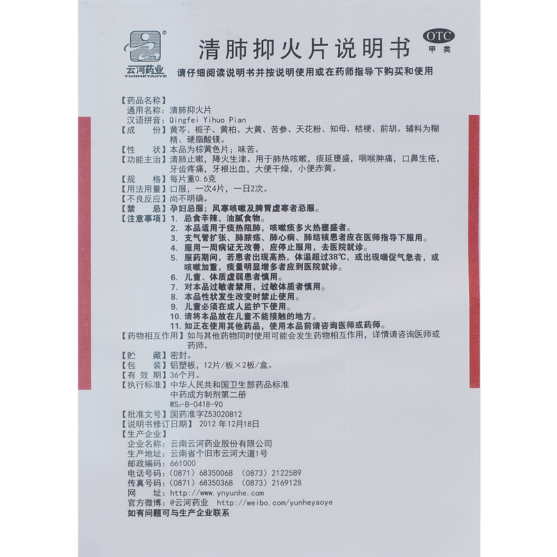 清肺抑火片/0.6g*24片