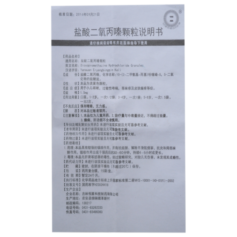盐酸二氧丙嗪颗粒/1.5mg*15袋